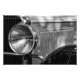 Bilden av den här bran i svartvitt skildrar framkvartsparten på en antikisk bil med utförliga detaljer. Perfekt till bilentusiasten eller bilentusiasten!