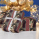 Ett fantastiskt antika 1910-Franskars julfotkort av en rustik, vintage Jultomten och en söt, ynklig flicka som glatt ställer sig med en påse av fjällande leksaker och presenter. Med elegant antika guld-bokstäver som önskar en Joyeux Noel.