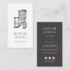 affärskorten för lodrät av elegant för antika affärer, antikviteter, möbelreparatörer eller insida-konstruktörer har en vintage-etsad rockstolsillustration i träkol, med ditt namn och/eller namn under. Anpassa den omvända sidan med din kontaktinformation, inklusive tre medieikoner i social och en mall fält för medieferensen i social.