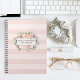Behålla om dina avtalade tider, kunddata och mycket annat med vår bärbara blommigt för chic. Utformningen har en ton på en pastellbakgrund med rosa strimlad bakgrund med ditt namn och/eller namn på en blommigt med vattenfärg med kluster av rosa, persiko- och krämblommor och blommor från ro och peony. Perfekt för salonger, stilistorna, makeup artists eller andra företag.