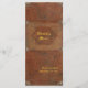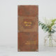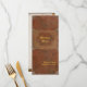 Framsidan ser ut som läderomslaget på ett gammalt bok, och menyn som den är skriven på ett av sidorna.