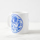 Kaffe mugg i en vintage Jacobean-blomman mönster, anpassad från antika kinesiska porslin, i nyanser av djup kobolt och cerulenblått