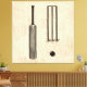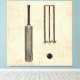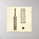 En antikisk kricketillustration med en fladdermus-kricketkonsdesign på vintagens manusbakgrund.