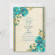 Antique Guld och Teal Botanical Bröllop Inbjudningar
