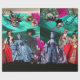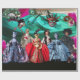 Uttryckliga, vitaktiga forna venetianska marionetter från !700, klara gorgblåa kostymer, färgstarka, konstnärliga venetianska masker med fjädrar och blåa grönten teal silke trasa, Original Digital Collage och Graphic Design by Bulgan Lumini - Baldesign3d (c)