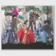 Uttryckliga, vitaktiga forntida valpar från !700, klara gorgblåa kostymer, färgstarka, konstnärliga venetianska masker med fjädrar och fuchsia rosa silke trasa, Original Digital Collage och Graphic Design by Bulgan Lumini - Baldesign3d (c)