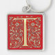 Antique monogram T Fyrkantig Silverfärgad Nyckelring