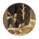 En bakare som blåser sitt horn.Flemish-oljemålning från 1681,från gammal bakverk.Denna klassiska utformning är perfekt för näringsexperter, dietister, cateringföretag, livsmedelstjänst, beredning eller restaurang, catering. .