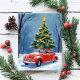 Antique Red Car Julgran Helgdag Card