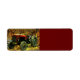 Antique Red Tractor Rustic Barn Returadress Etikett