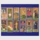 Major Arcanas: Sol, Måne, fortituden, domen, Hanged Man, Älskare, Djävulen, världen, Hermit, Fortunes hjul, Magician och Fool. Grafisk design och utveckling utförd av Bulgan Lumini . Detta vackra Visconti-däck kan vara det äldsta Tarot-däcket som finns. Det är ett av flera handmålade italienska däck som familjen Visconti beställde på 1500-talet.De överlevande korten är av särskilt historiskt intresse på grund av formgivningens skönhet och detaljrikedom, som ofta utfördes i värdefulla material och ofta återger medlemmar av familjerna Sforza och Visconti i tidskläder och kläder. Korten ger följaktligen också en glimt av det gyllene livet i Milano. På uppdrag av Filippo Maria Visconti, chef för Milano, och dennes efterträdare Francesco Sforza.