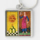 ANTIQUE RENAISSANCE TAROTS/SOL OCH MÅNE FYRKANTIG SILVERFÄRGAD NYCKELRING