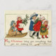 Det här är ett charmerande vykort för vintage, runt 1922, som visar några söta barn som alla är klädda till jul! De kanske är på väg till mormors hus, med gåvor, krig, sled och allt.