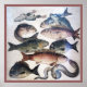 ANTIQUE ROMAN MOSAICS, FISKAR,HAVSOMRÅDESSCENE POSTER