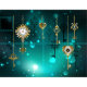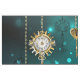 Guld, antika nycklar med växlar och dialer hänger på guld-kedjor på ljusstrålande gröntens bakgrund.