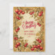 An ornate Victorian-style Christmas invitation featuring rich red poinsettias, swirling gold filigree, and festive holly accents. The aged parchment background enhances the nostalgic charm of the season, creating a timeless piece perfect for elegant holiday gatherings or Christmas dinner parties.