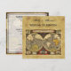 Antique World Map #2, Distress Tea Nedfläckad Background - Wedding Invation Elegant, snyggt och chic anpassade party och firande inbjudningar och tillbehör med en färgstark antikvärldskarta 1565 och skapat av kartografen Jodocus Hondius. Den visas på en nedtryckt tebakgrund med nedfläckadens utseende. Observera att det här är en grafisk design/bild som överförs till den underliggande produkten och inte innehåller några faktiska strukturer, band, metall, etsning, gemar eller prägling. 2013 ©MyPartyUtformar alla höger reserverade