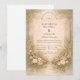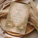 En romantisk skogsinspirerad design med mjuka neutrala blommor, eleganta horn och en varm vintage pergamentbakgrund. Kompositionen blandar organisk grönska med förfinade detaljer för en tidlös boho-estetik som känns både intim och förfinad. Perfekt för par som dras till naturen, underdriven lyx och klassisk romantik med en rustik touch.