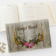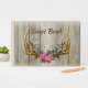 Gästregistret för din bröllop har en Rustic-antel och rosa ros-scen för jägaren och hans brud.