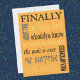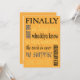 Äntligen gift rolig bröllopsannons eller partajinvitation med roliga fraser: äntligen, på tiden, väntan är över, länge efterlängtad, etc. Din anpassade text på baksidan. Om folk har väntat i all evighet på att du ska gifta dig och ni rymde eller hade ett destinationbröllop eller en vigselceremoni på rådhuset och sedan ska ha ett avslappnat bröllopsfirande senare, anpassa denna roliga icke-traditionella inbjudan till er efterbröllopsfest. Eller redigera texten så att den blir ett meddelande om er länge väntade union.