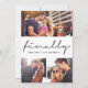 "Äntligen" Stilfull Kalligrafi Signatur Script Modern Minimalistisk 3-Foto Kollage Save The Date Annonskort.