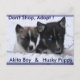 De är bröder, men vi tänka (nästan vet) har olika far. Akita-pojken har levererats till sitt hem, Husky-marionen är fortfarande tittar för sitt hem.