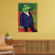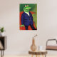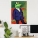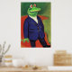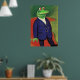 En Antropomorf grönt grog i blå kostym, stil i Edvard Munch. Det här är en AI-skapad konst.