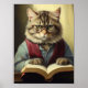 antropomorf katt som läser en bok poster