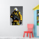 Porträtt i en coola Antropomorfisk örn med gult jacka, svarta handskar och grönt byxor. Det här är en AI-skapad konst.