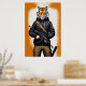 En Porträtt av en coola tiger solider i soldatuniform som håller ett vapen. Det här är en AI-skapad konst.