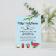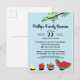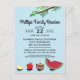 Lustigt kort för familjeåterförening med myggor som bär med sig picknick, inklusive vattenmelon och kaka och anpassade fält för din familjeåterförening.