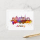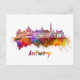 Antwerpen-skylin i vattenfärgstänk med urklipp från väg