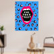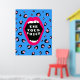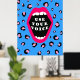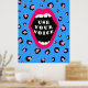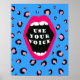 Använda rösten! Tala upp, även om rösten skakar. Leopardtryckets bakgrund i blått och rosa visar en pulserande rosa som skriker mun.