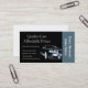 Foto på en ny bil på svart bakgrund. Högerna har ett grått-textområde för ditt företag namn med sidotext för ett professionell, modernt och unikt utseende. Underbart affärskort för nya och begagnade bilhandlare, bildetaljister, bilverkstäder, bilverkstäder och mekaniker. Den här konstruktionen har många olika snyggtar i den och några olika sidvagn i färg.