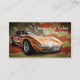 Illustration av gammal, återställd muskelbil på en antik, utseglad amerikansk Flagga. Lägg till en egen anpassningsbar längst fram och längst bak i affärskortet. Underbart affärskort för bilrestaurering, bilhandlare, bildetaljister, bilverkstäder och mekaniker. Relaterade produkter