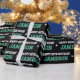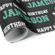 Custom photo gift wrap with a sports jersey style! This editable template features a "Happy Birthday" greeting, and is personalized with the recipient's name and birthday age. A trendy design with retro typography that can be customized to suit a variety of special occasions. Suitable for all ages, from kids and teens to family and friends. Perfect for a landmark 16th, 18th, 21st, 30th, 40th or 50th birthday. This seamless pattern gift wrap is printed on premium quality paper with your choice of a matte or glossy finish. Different length rolls are available from 6 feet - 60 feet. Colors: blue-green green, black and white — or customize the background color with the design tool.