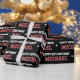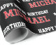 Custom photo gift wrap with a sports jersey style! This editable template features a "Happy Birthday" greeting, and is personalized with the recipient's name and birthday age. A trendy design with retro typography that can be customized to suit a variety of special occasions. Suitable for all ages, from kids and teens to family and friends. Perfect for a landmark 16th, 18th, 21st, 30th, 40th or 50th birthday. This seamless pattern gift wrap is printed on premium quality paper with your choice of a matte or glossy finish. Different length rolls are available from 6 feet - 60 feet. Colors: red, black and white — or customize the background color with the design tool.
