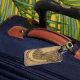 Den här gitarren, den monogrammade bagagetaggen, har en avskärmad bild av en akustisk gitarr ljud hål, rosette, strängar och nacke, som är blandad med en abstrakt struktur och sepia ton - av katz_d_zynes