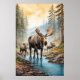 *~* AP49 MOOSE Herd Stream Nature Forest Poster