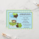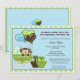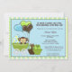 Bedårande apa barnhissels inbjudan i blå, gröna och bruna nyanser, perfekt för en POJK...söt apa bebis i en vagn.
