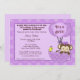 Bedårande apa baby shower inbjudan i lavendel (nyanser av lila)...baby apa med en liten fågel i en paraply