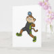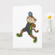 Apa framför handbollsspelare med handboll kort