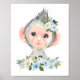 Lägg till de sista detaljerna i din babys rumsinredning eller barnets sovrum med dessa underbara konsttryck! Designen innehåller apa, blå akvarellblommor och grönska.