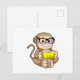 Apa som student med glasögon & bok vykort