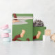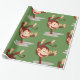 Apan på en räcker glansigt slående in papper presentpapper