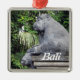 Resa till Bali, Indonesien berömda hinduiska ö, och du måste besöka townen av Ubud, som är hem- till den sakrala apaskogen. Den gråa stenen avbildar av modern lång-tailed macaque som apan sitter atop en pelare på hänrycka, med henne stenbebisapor som leker runt om henne fot, och nedanfört henne på pelaren. En stensvan från en av de barnsliga aporna visar runt om tränga någon av pelaren i den lägre höger tränga någon. En grönt, lövrik bakgrund göras upp av träd och fernormbunksblad. Fotoet tar copyrightt på Gail Storrs 2006.