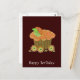 En snygg apelsinmuffin med godisfruktsskivor på toppen. En chokladbrun bakgrund. Anpassa efter önskemål.