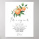Vattenfärg citrus tema bröllopsfest med vattenfärg illustration av apelsiner på en trädgren. Elegant kalligrafisk handskrift, som är perfekt för vår, sommar eller höst bröllop. Matchande föremål tillgängliga.