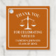 Denna anpassade apelsinfärgade Juristläroexamen examen festlig presentetikett har elegant typografi för en examenklass 2026. Anpassa med ditt examenår under de vita rättvisans vågar för fantastiska personliga presenter till advokater eller jurister.