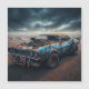 Blue Classic 1969 Chevy Camaro med blåsare och rost i öknen under apokalypsen.